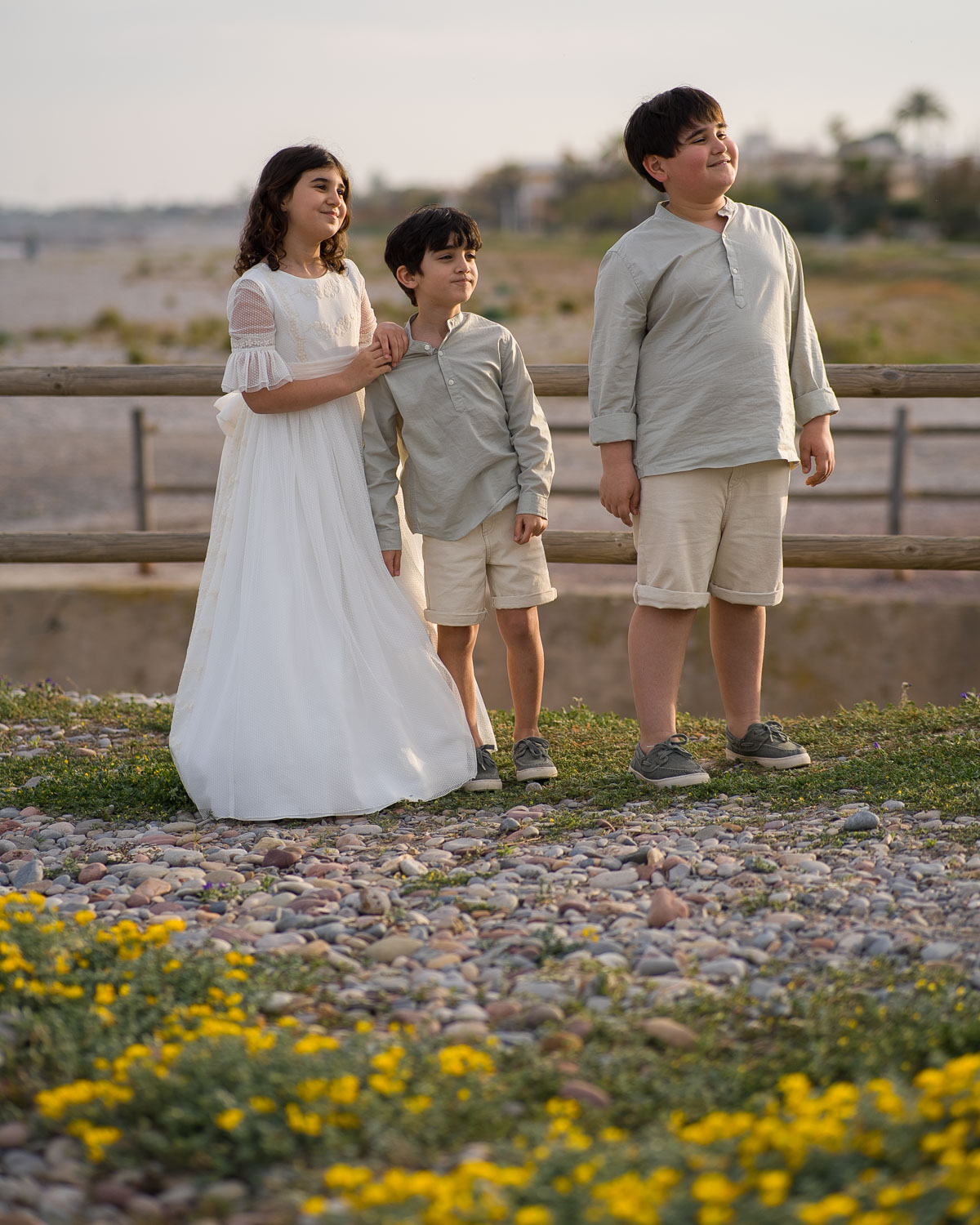 Por supuesto que sí. De hecho, estas sesiones son a menudo mi parte favorita porque permiten capturar imágenes muy bonitas en un ambiente natural, sin prisas ni agobios. La familia está tranquila y el niño o la niña también, lo que facilita que se relajen, se rían, jueguen o interactúen con sus hermanos, logrando fotos más especiales y auténticas. las precomuniones son ideales también para conocerme y que el niño o niña me coja confianza. Valencia y toda la Comunidad Valenciana ofrecen muchos lugares hermosos para hacer estas sesiones al aire libre.